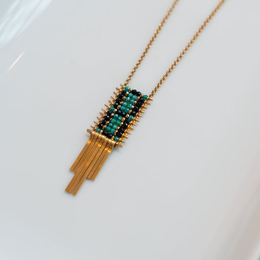 Onyx, Green Zircon, Pyrite Tapestry Necklace