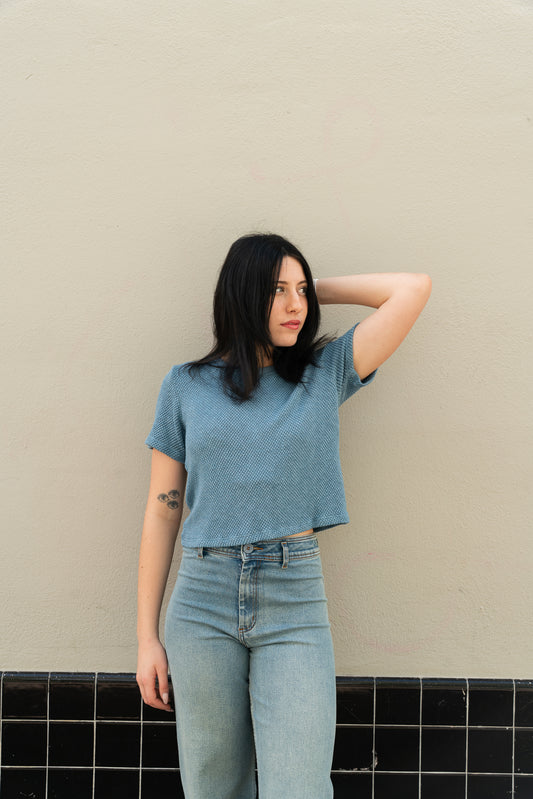 Striped Short Sleeve Top - Navy/White/Sea Blue