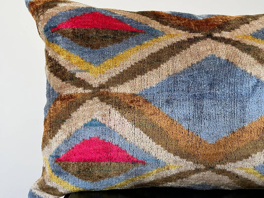 Cover Blue/Brown Diamond Ikat Velvet Silk Pillow
