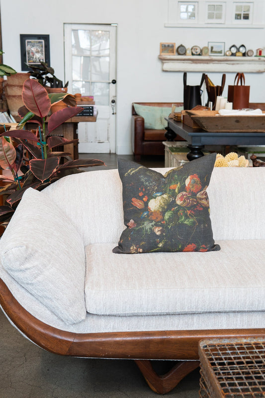 20" Square Cotton Blend Floral Velvet Printed Pillow