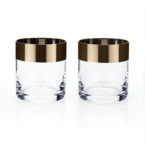 Bronze-Rimmed Crystal Lowball Tumblers - Set of 2