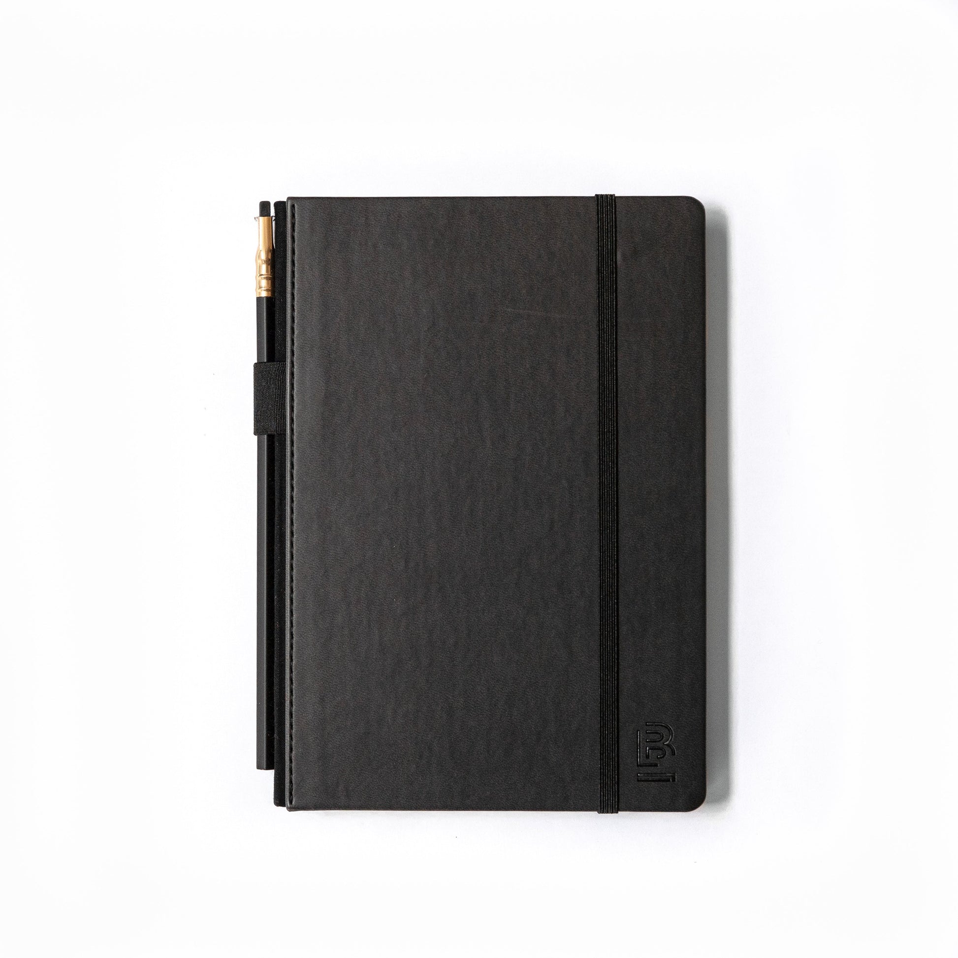 A5 hardcover notebook (148 x 210 mm), 160 pages of 100 GSM ivory paper, black matte cover, signature lay-flat binding, loaded with a Blackwing Matte pencil.