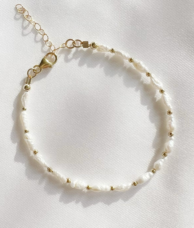 Genuine AA freshwater rice pearls and 14k gold filled beads.